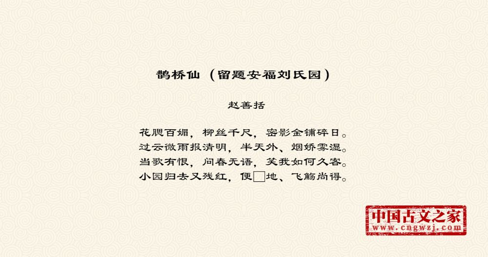 《鹊桥仙(留题安福刘氏园)》由赵善括创作