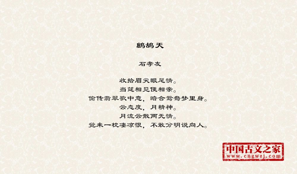 《鹧鸪天》的原文打印版(石孝友)