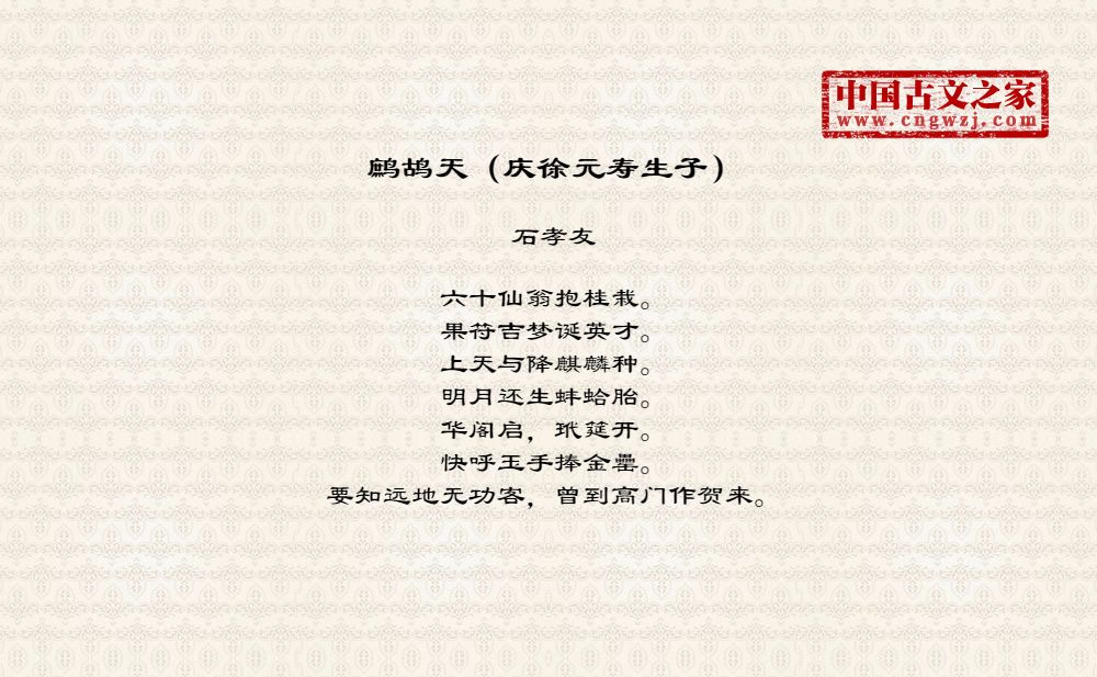 《鹧鸪天(庆徐元寿生子)》的原文打印版(石孝友)