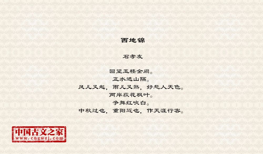 《西地锦》由石孝友创作
