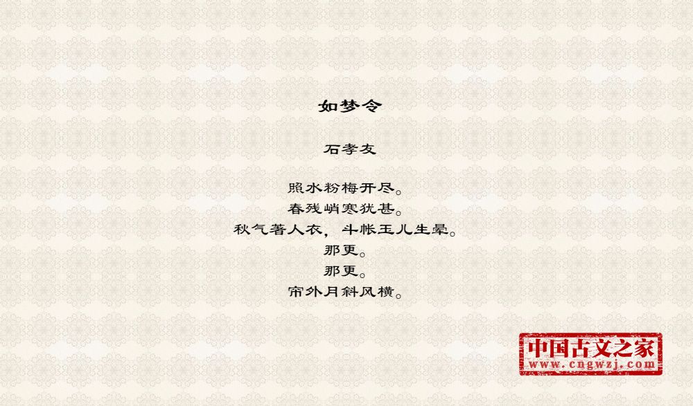 《如梦令》的原文打印版(石孝友)