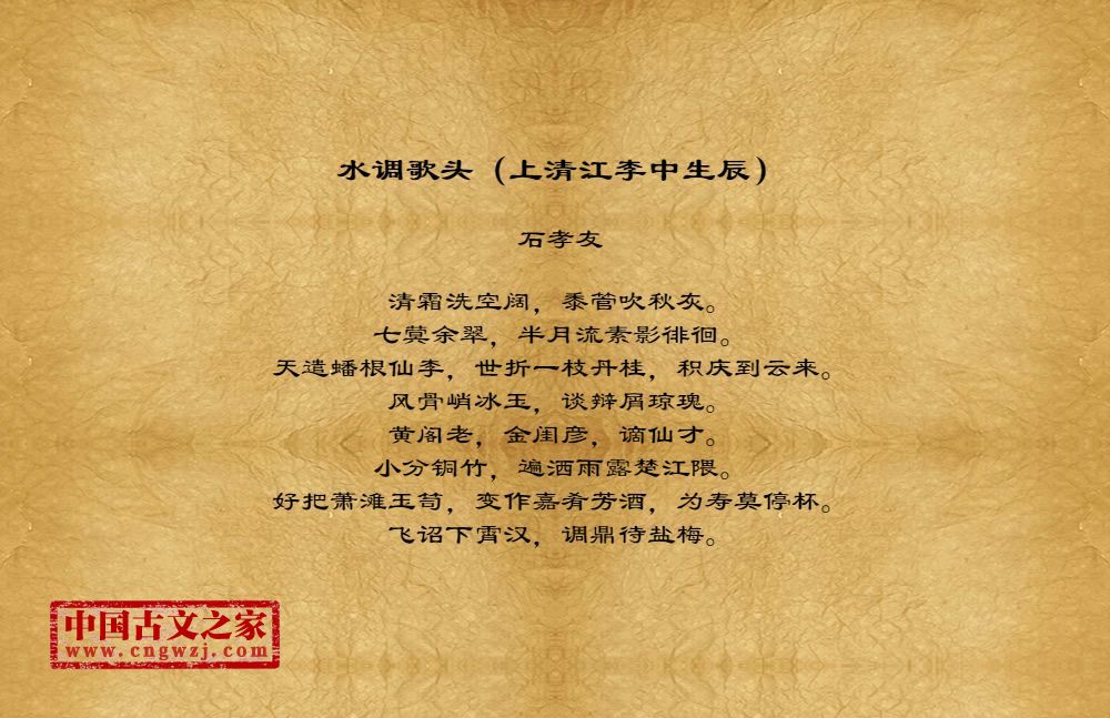 《水调歌头(上清江李中生辰)》的原文打印版(石孝友)