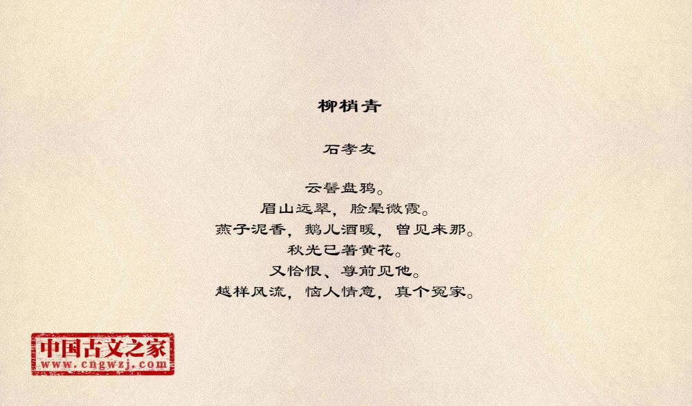 《柳梢青》的原文打印版(石孝友)