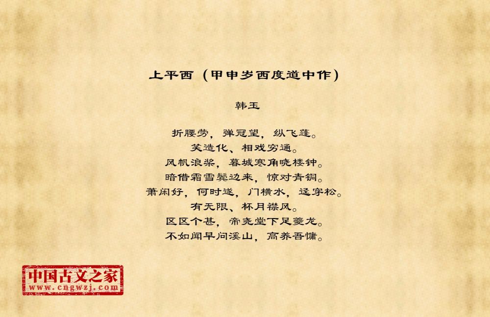 《上平西(甲申岁西度道中作)》的原文打印版(韩玉)