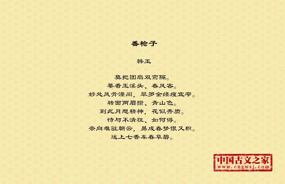 韩玉,字温甫,南宋词人,韩玉本金人,绍兴初挈家南渡。毛晋刻入六十家词,称其虽与康与之、辛弃疾唱和,相去如苎萝、无盐。著有《东浦词》,世人又称其“韩东浦
