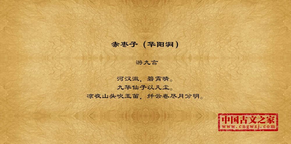 河汉澈,碧霄晴。九华仙子以凡尘。凉夜山头吹玉笛,纤云卷尽月分明。