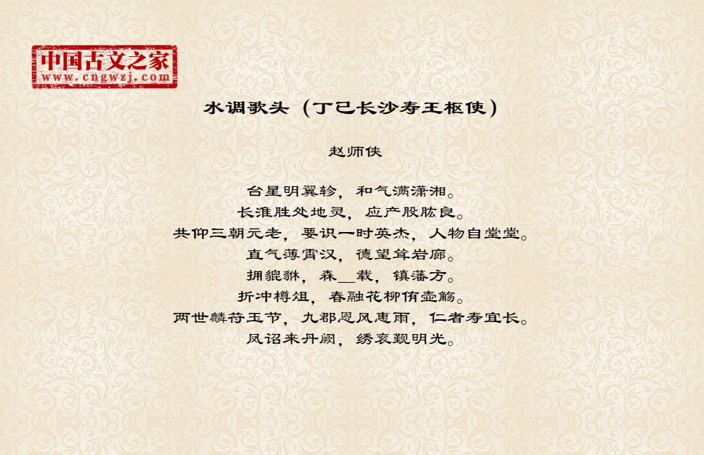 《水调歌头(丁已长沙寿王枢使)》的原文打印版(赵师侠)
