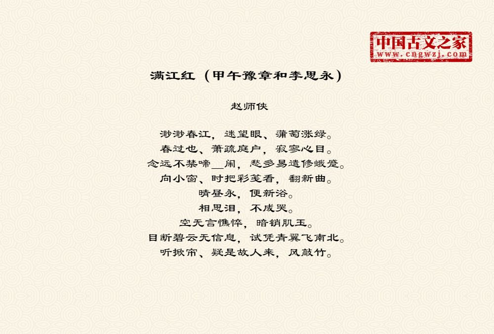 《满江红(甲午豫章和李思永)》的原文打印版(赵师侠)