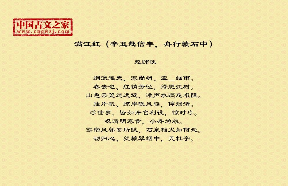 《满江红(辛丑赴信丰,舟行赣石中)》的原文打印版(赵师侠)