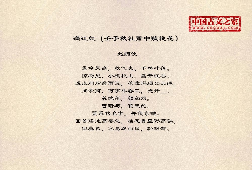 《满江红(壬子秋社莆中赋桃花)》的原文打印版(赵师侠)
