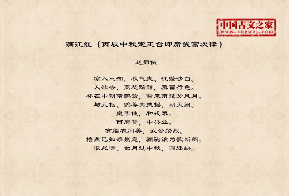 《满江红(丙辰中秋定王台即席饯富次律)》的原文打印版(赵师侠)