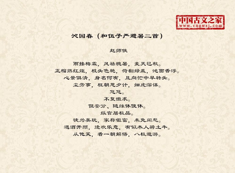 《沁园春(和伍子严避暑二首)》的原文打印版(赵师侠)