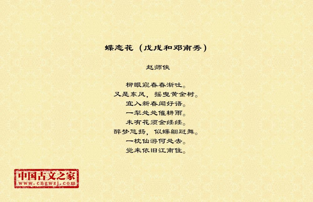 柳眼窥春春渐吐。又是东风,摇曳黄金树。宜入新春闻好语。一犁处处催耕雨。未有花须金缕缕。醉梦悠扬,似蝶翩跹舞。一枕仙游何处去。觉来依旧江南住。