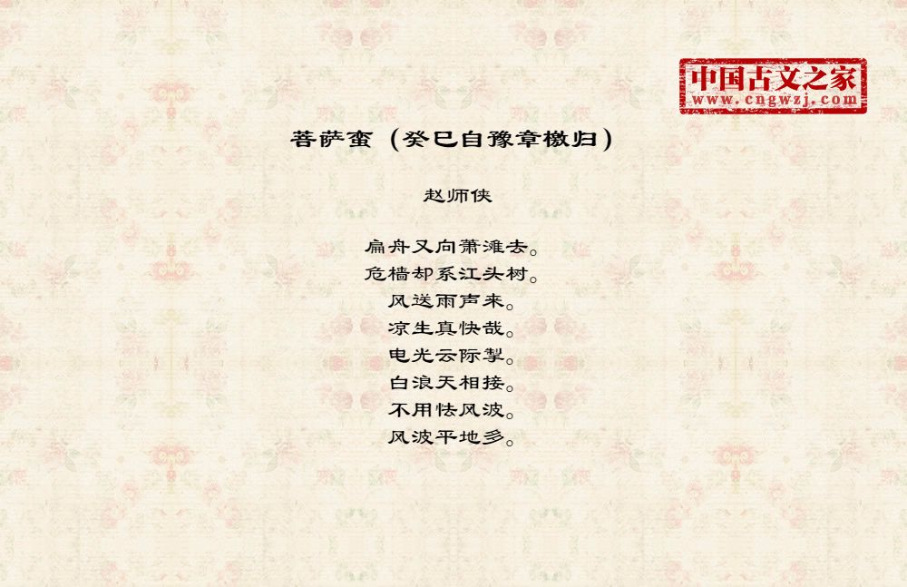 《菩萨蛮(癸巳自豫章檄归)》的原文打印版(赵师侠)