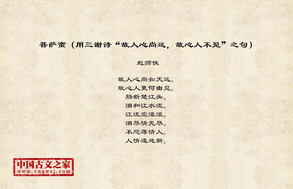 《菩萨蛮(用三谢诗“故人心尚远,故心人不见”之句)》的原文打印版(赵师侠)
