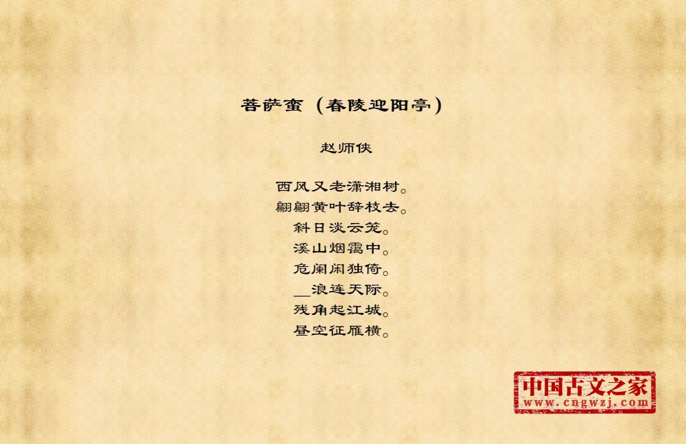 西风又老潇湘树。翩翩黄叶辞枝去。斜日淡云笼。溪山烟霭中。危阑闲独倚。_浪连天际。残角起江城。昼空征雁横。