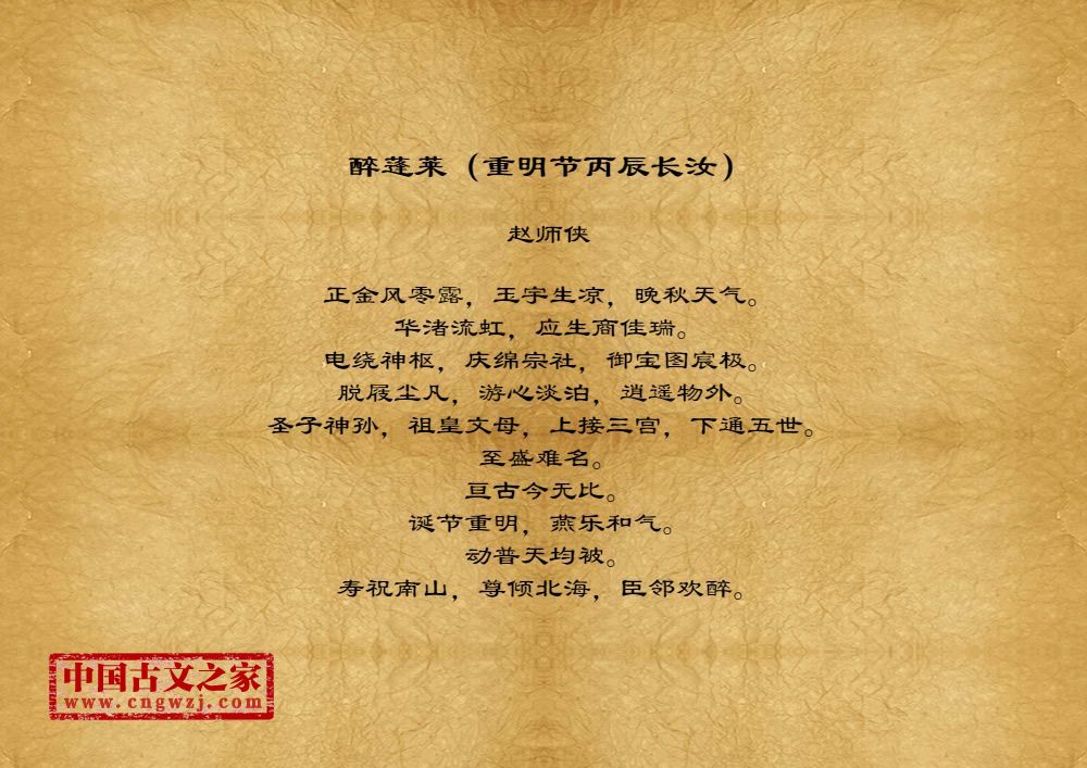 《醉蓬莱(重明节丙辰长汝)》由赵师侠创作