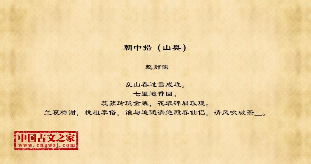 乱山春过雪成堆。七里递香回。蕊簇玲珑金粟,花装碎屑玫瑰。兰衰梅谢,桃粗李俗,谁与追随清绝殿春仙侣,清风吹破荼_。