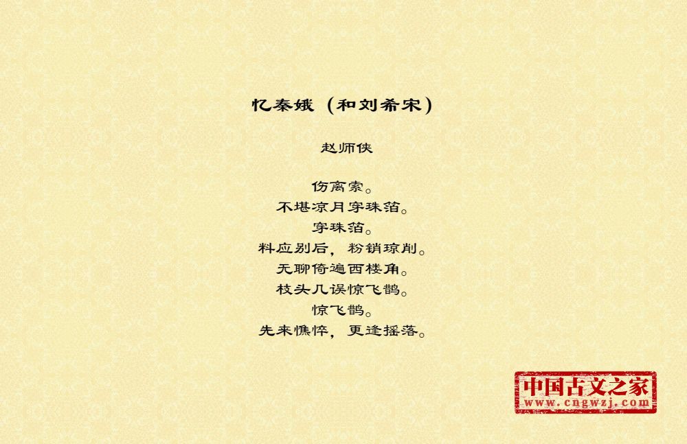 伤离索。不堪凉月穿珠箔。穿珠箔。料应别后,粉销琼削。无聊倚遍西楼角。枝头几误惊飞鹊。惊飞鹊。先来憔悴,更逢摇落。