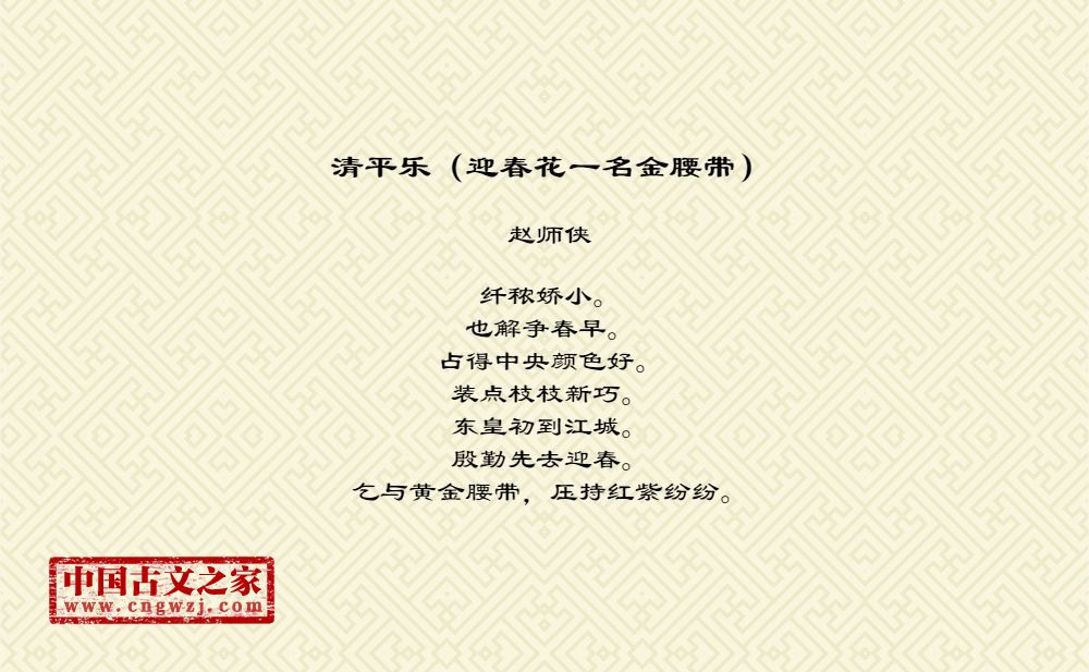 《清平乐(迎春花一名金腰带)》的原文打印版(赵师侠)