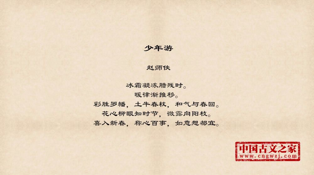 冰霜凝冻腊残时。暖律渐推移。彩胜罗幡,土牛春杖,和气与春回。花心柳眼知时节,微露向阳枝。喜入新春,称心百事,如意想都宜。