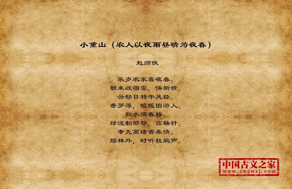 《小重山(农人以夜雨昼晴为夜春)》的原文打印版(赵师侠)