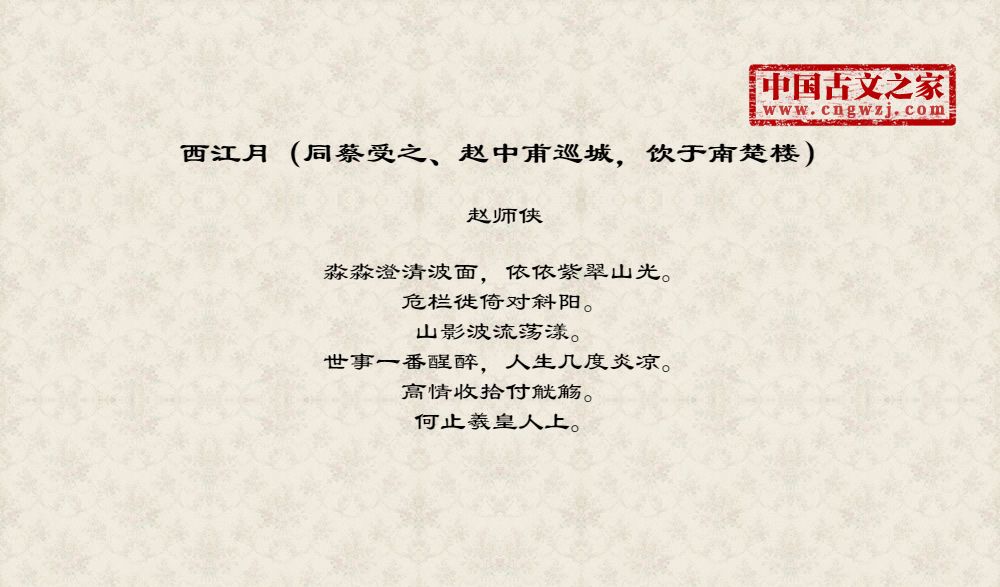 《西江月(同蔡受之、赵中甫巡城,饮于南楚楼)》的原文打印版(赵师侠)