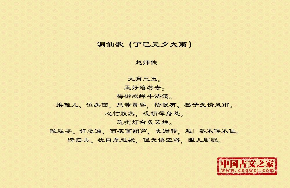 元宵三五。正好嬉游去。梅柳蛾蝉斗济楚。换鞋儿、添头面,只等黄昏,恰恨有、些子无情风雨。心忙腹热,没顿浑身处。急把灯台炙艾炷。做匙婆、许葱油,面灰画葫芦,更漏转,越煞不停不住。待归去、犹自意迟疑,但无语空将,眼儿厮觑。