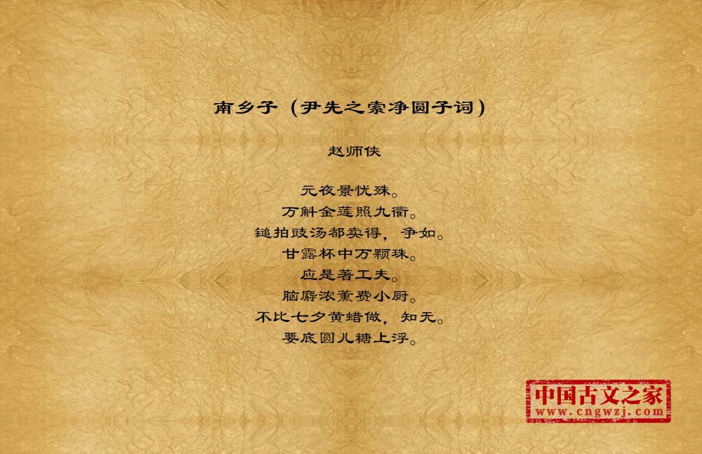 《南乡子(尹先之索净圆子词)》的原文打印版(赵师侠)