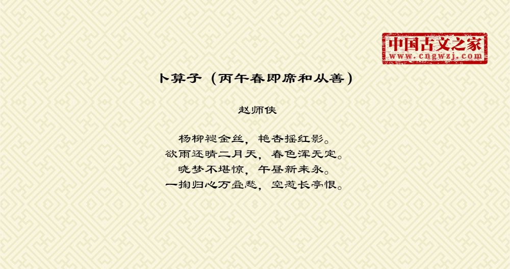 《卜算子(丙午春即席和从善)》的原文打印版(赵师侠)