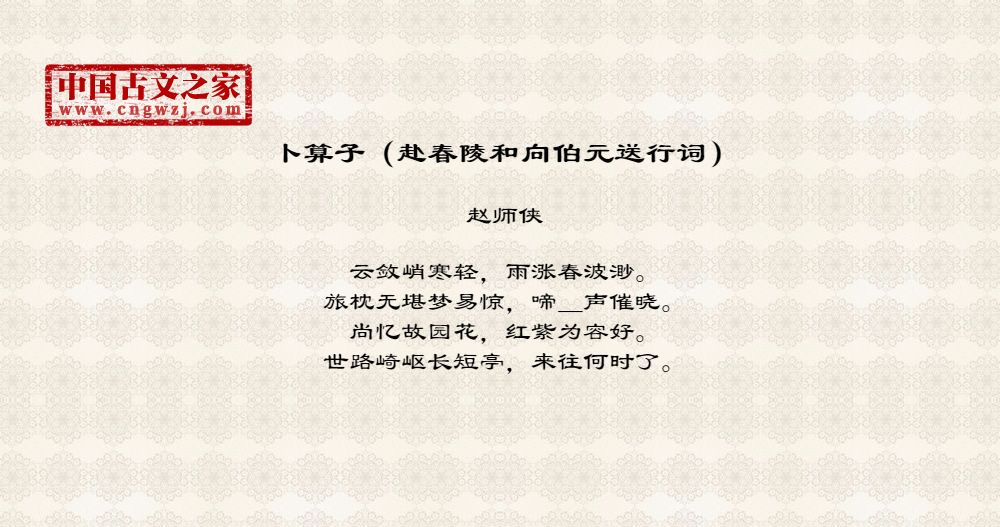 《卜算子(赴春陵和向伯元送行词)》的原文打印版(赵师侠)