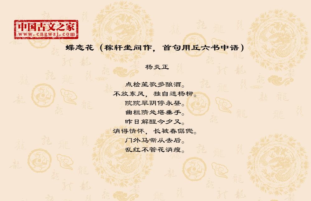 《蝶恋花(稼轩坐间作,首句用丘六书中语)》由杨炎正创作