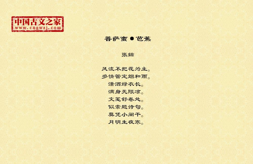 《菩萨蛮·芭蕉》的原文打印版(张鎡)