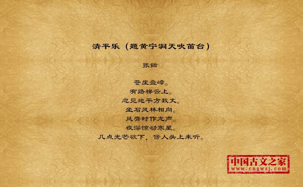 《清平乐(题黄宁洞天吹笛台)》由张鎡创作