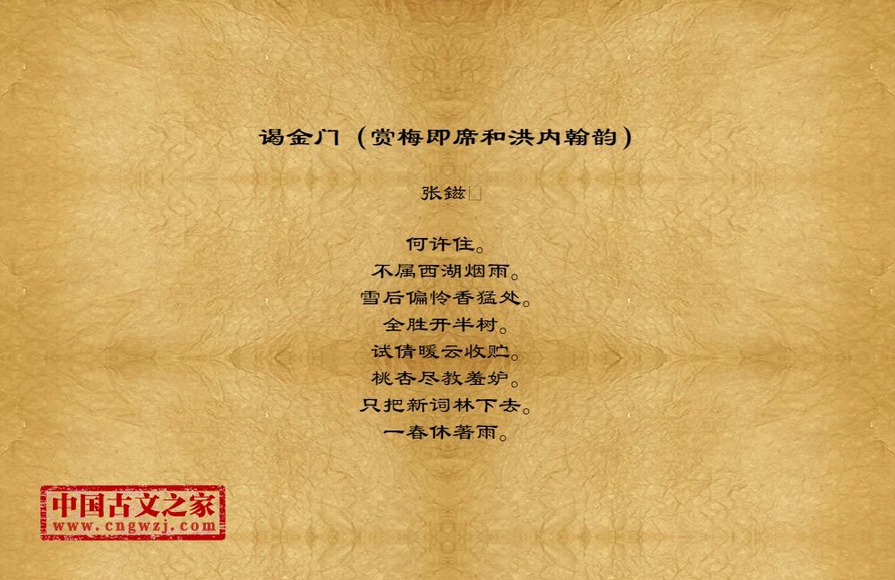 《谒金门(赏梅即席和洪内翰韵)》由张鎡创作
