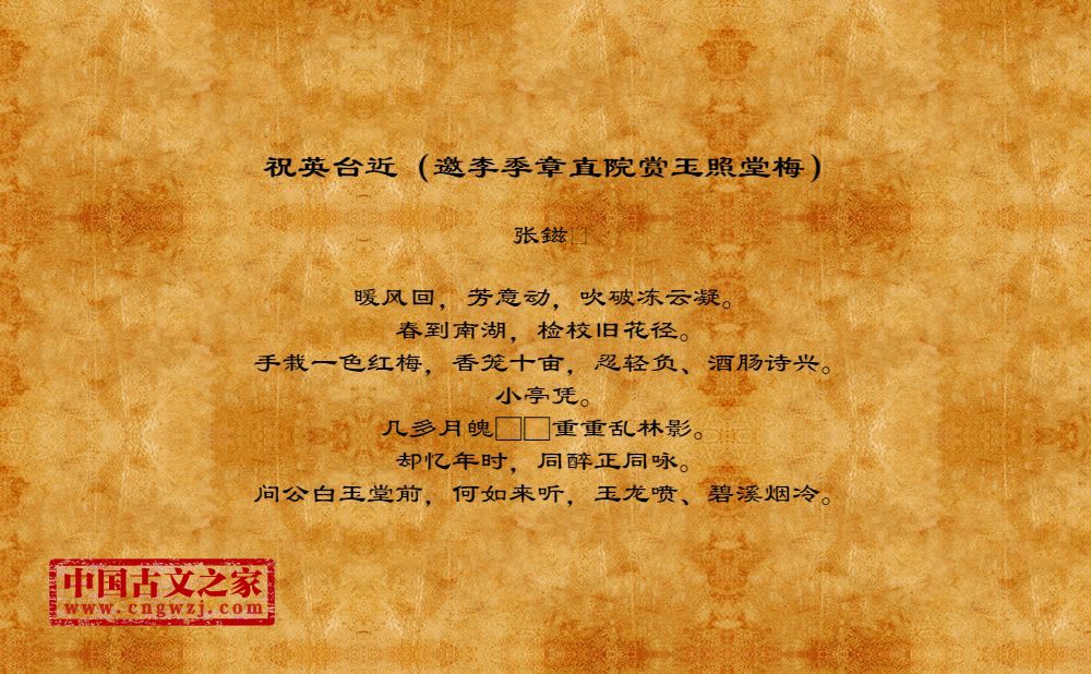 《祝英台近(邀李季章直院赏玉照堂梅)》的原文打印版(张鎡)
