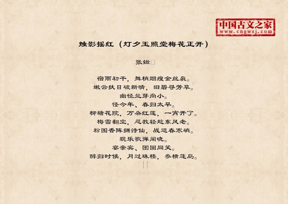 《烛影摇红(灯夕玉照堂梅花正开)》的原文打印版(张鎡)