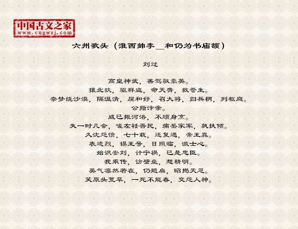 六州歌头(淮西帅李_和仍为书庙额)