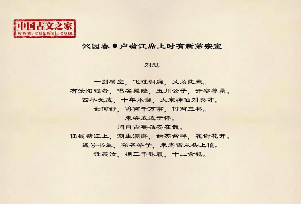 《沁园春·卢蒲江席上时有新第宗室》的原文打印版(刘过)