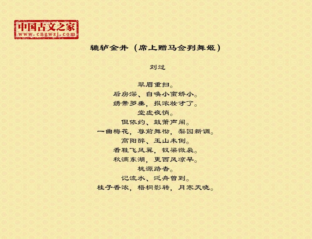 《辘轳金井(席上赠马佥判舞姬)》的原文打印版(刘过)