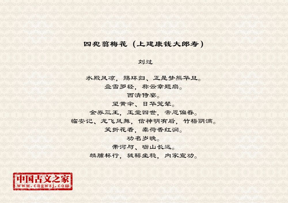 《四犯翦梅花(上建康钱大郎寿)》的原文打印版(刘过)