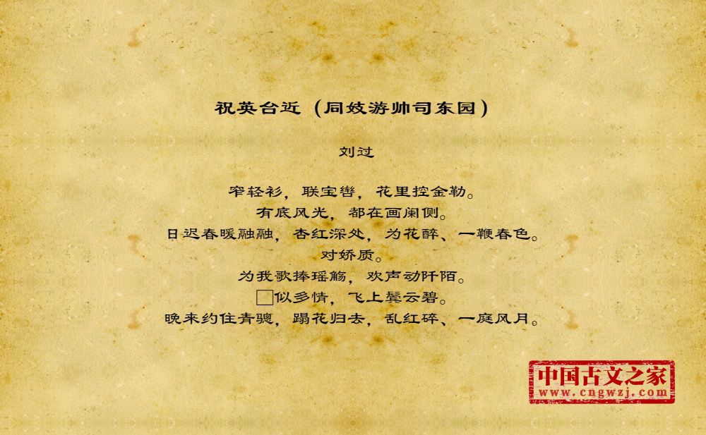 《祝英台近(同妓游帅司东园)》的原文打印版(刘过)