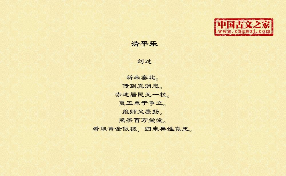 新来塞北。传到真消息。赤地居民无一粒。更五单于争立。维师父鹰扬。熊罴百万堂堂。看取黄金假钺,归来异姓真王。