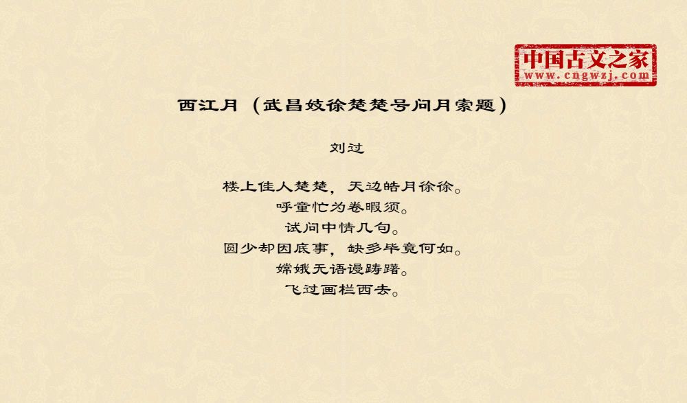 《西江月(武昌妓徐楚楚号问月索题)》由刘过创作