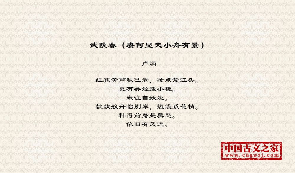 《武陵春(赓何显夫小舟有景)》的原文打印版(卢炳)