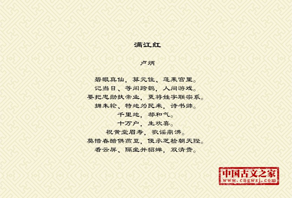 碧眼真仙,算元住、蓬莱宫里。记当日、等闲跨鹤,人间游戏。要把忠勋扶帝业,更将姓字联宗系。拥朱轮、特地为民来,诗书帅。千里地,都和气。十万户,生欢喜。祝黄堂眉寿,歌谣鼎沸。莫惜春醅供燕豆,便承芝检朝天陛。看云屏、隔坐并貂蝉,双清贵。