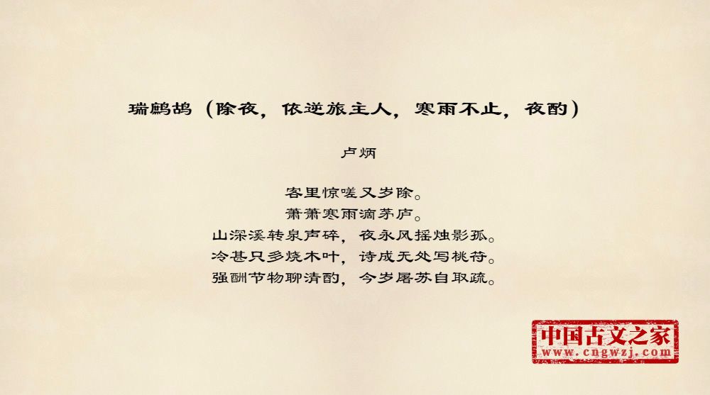 《瑞鹧鸪(除夜,依逆旅主人,寒雨不止,夜酌)》的原文打印版(卢炳)