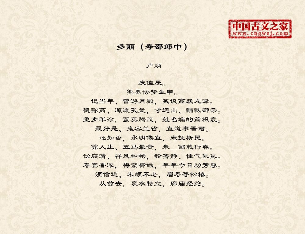 寿宴香浓,梅繁柳嫩,年年今日劝芳尊。