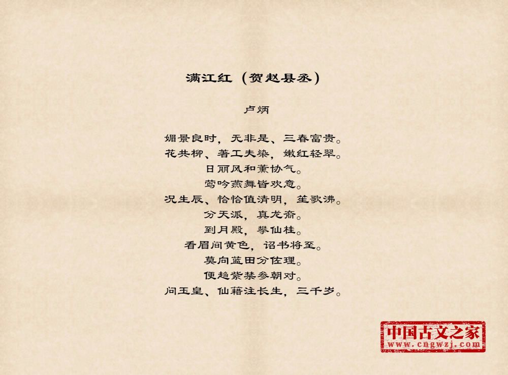 媚景良时,无非是、三春富贵。花共柳、著工夫染,嫩红轻翠。日丽风和薰协气。莺吟燕舞皆欢意。况生辰、恰恰值清明,笙歌沸。分天派,真龙裔。到月殿,攀仙桂。看眉间黄色,诏书将至。莫向蓝田分佐理。便趋紫禁参朝对。问玉皇、仙籍注长生,三千岁。