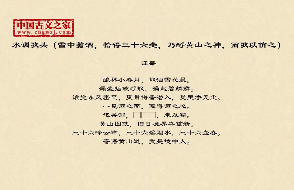 《水调歌头(雪中篘酒,恰得三十六壶,乃酹黄山之神,而歌以侑之)》的原文打印版(汪莘)